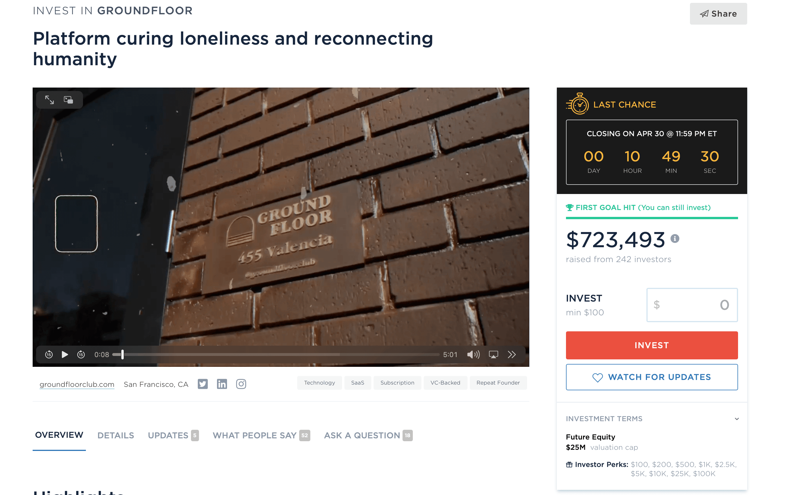 Watch the video here: WeFunder Campaign for Groundfloor Club