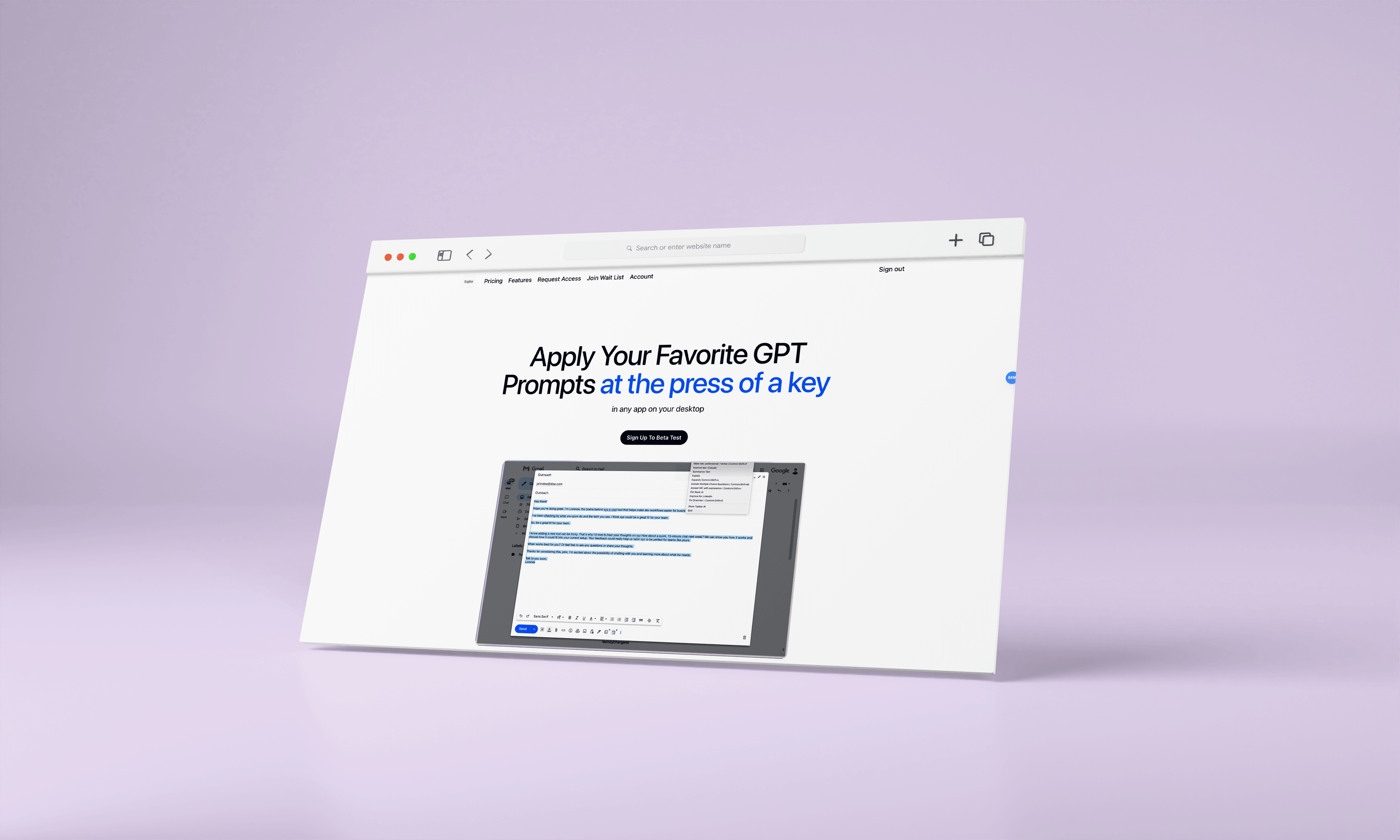 Topbar AI, a desktop application for users to apply their favorite ChatGPT prompts at the press of a key without context switching.
